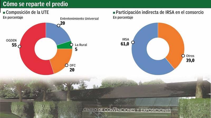 La composición de la UTE ganadora es compleja. La firma Ogden concentra la mayoría accionaria con el 55%, La Rural la minoría con 5%, mientras que OFC y Entretenimiento Universal tienen 20% cada una. Para observar el peso de Irsa en la operación es necesario ver el detalle de su participación indirecta en esas compañías. El 70% de Ogden le pertenece mientras que el otro 30% es de Diego Finkelstein. Irsa también es dueño de la mitad de La Rural, firma que comparte en partes iguales con la Sociedad Rural Argentina. Y además, según fuentes del mercado, Entretenimiento Universal es también una controlada de Irsa. Así, el resultado de la presencia de la firma de Eduardo Elzstain en todas esas porciones de la UTA suma un 61% de la torta que representa el control del Centro de Exposiciones.