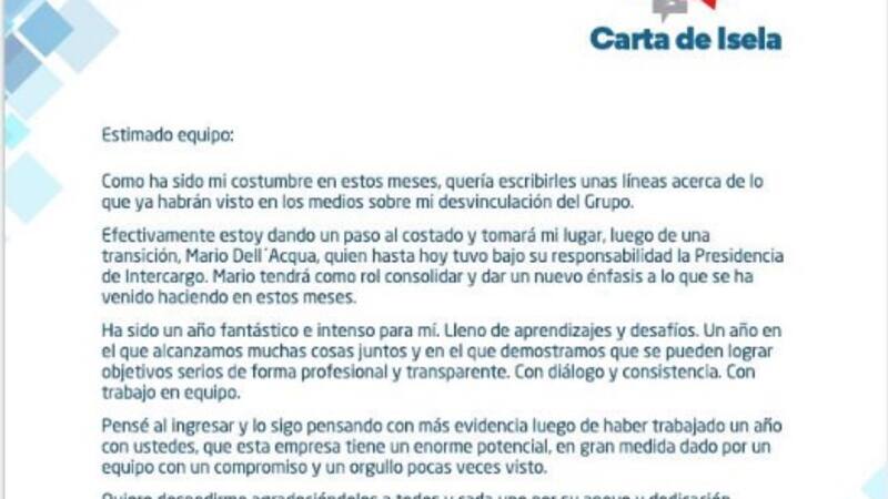 “Mario tendrá como su rol consolidar y dar un nuevo énfasis a lo que se ha venido haciendo en estos meses , afirmó en otro de los párrafos de la carta y agregó que “ha sido un año fantástico e intenso para mí. Lleno de aprendizajes y desafíos .