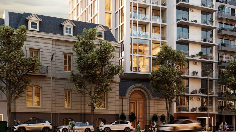 La desarrolladora es la misma que lleva adelante el emprendimiento de la casa Anchorena, también en Recoleta. Para la mansión de Uruguay al 1100, se convocó al estudio de arquitectura Lacroze Miguens Prati, de reconocida experiencia en la rehabilitación de edificios patrimoniales.
