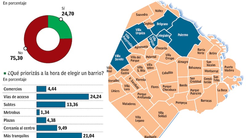 Si bien el 70% de los encuestados sostuvo que no dejaría su barrio actual aunque se mudara, los que sí lo harían buscan en primer lugar "un barrio más seguro, con más vías de acceso o más cerca del trabajo para reducir los tiempos de viaje".
