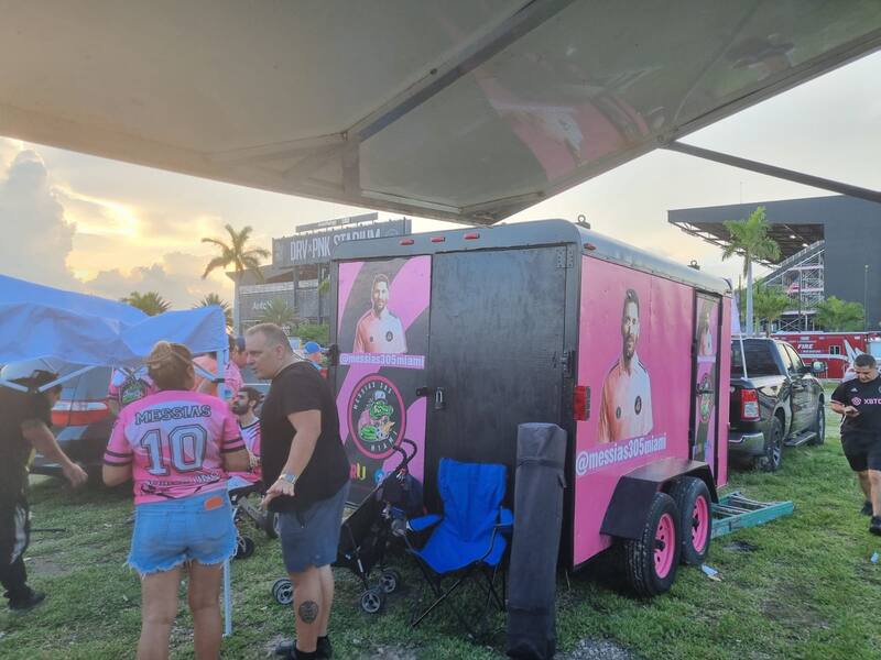 Las puertas del estadio abren al público solo una hora y media antes del encuentro, pero la fiesta empieza en los alrededores porque a imagen y semejanza de lo que sucede en el futbol americano, pululan las parrillas portátiles y corre la cerveza. Destaca el micro de "Messias 305" (305 es la característica telefónica original de Miami) con su potente parrilla desde donde se reparten choripanes. Esta nueva hinchada de Leo Messi surgió como una idea loca en una comida de amigos y ya suma 1.500 fans dispuestos a seguir al 10 por las canchas estadounidenses.