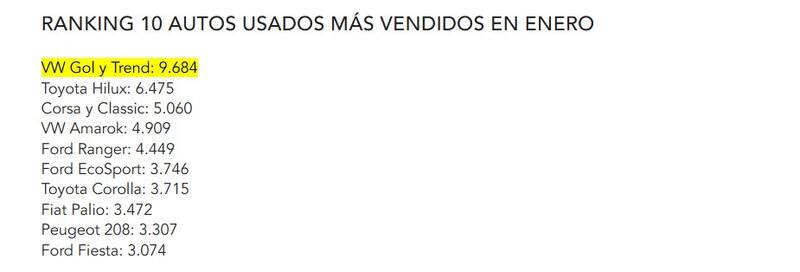 El Volkswagen Gol se mantuvo como el modelo más elegido por los compradores, con 9.684 unidades vendidas