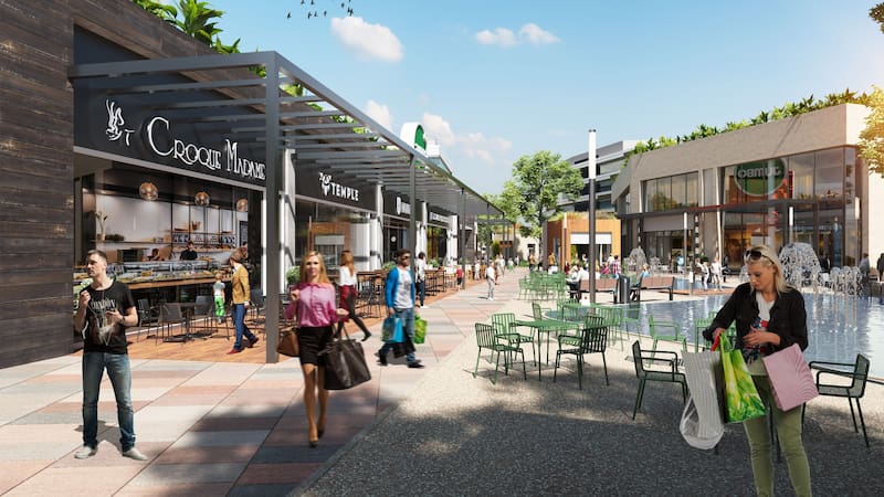 El centro comercial se ubicará en un terreno de 7 hectáreas sobre la autovía lo que permitirá la entrada de residente del barrio cerrado, pero también de cualquier personas que pase por el lugar.