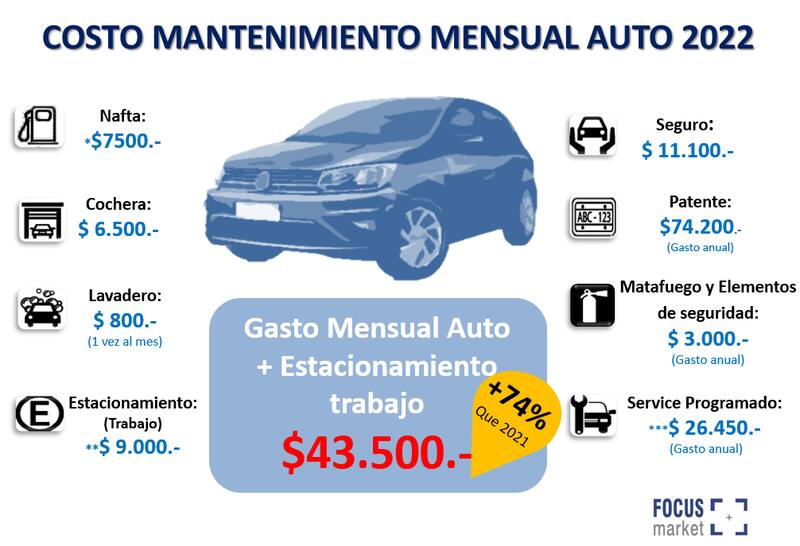 El mantenimiento de un auto en la Argentina aumentó un 74% en el último año y el gasto mensual ya asciende a $ 43.500.Así lo revela un informe que realizo la consultora Focus Market, liderada por Damian Di Pace.