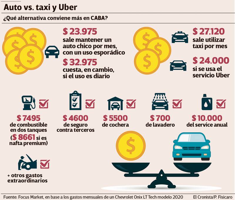 Si bien el número definitivo de lo que se debe desembolsar depende del uso, el modelo y los gastos extraordinarios, para arribar a estas cifras se tuvieron en consideración el costo de la patente, el alquiler de la cochera, el seguro contra terceros, dos tanques de nafta y un lavado mensual, entre otros conceptos.