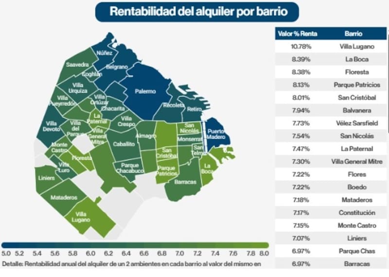Rentabilidad por barrio: de Palermo a Villa Lugano