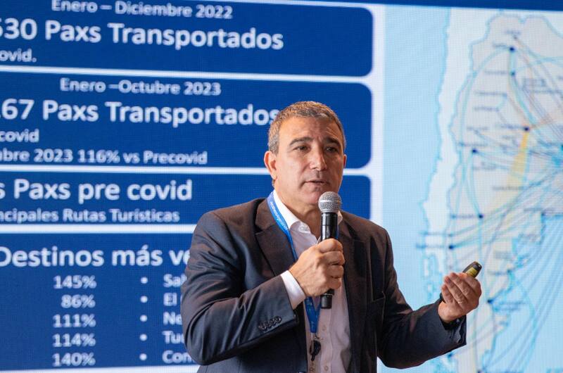 Y proyectó trasladar 15 millones de pasajeros el año próximo. "Apuntamos a un 2024 aún mejor. Cuando el Estado tomó Aerolíneas, transportaba a 5 millones", comparó respecto de cuando, 14 años atrás, el Estado Nacional recuperó el control de la empresa, luego de que en 2008 concluyera la gestión privada del grupo español Marsans.