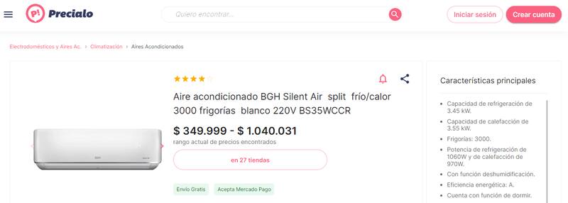 En sitios como Precialo, que tienen una herramienta de comparación histórica de precios, se observa una curva ascendente en los gráficos que exhiben la variación de los importes. Por caso, un aire acondicionado marca BGH 'silent air' split frío/calor de 3000 frigorías blanco que el domingo se vendía a un promedio de $ 399.016 en 32 tiendas, según el relevamiento de esta plataforma. El mismo modelo el lunes ya tenía un valor promedio de $ 495.639, un 24,2% más en solo 24 horas.