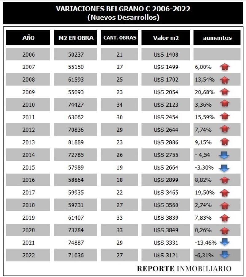 Según los datos de Reporte Inmobiliario, en Belgrano "centro", delimitada por las calles Ibera, vías del ferrocarril, Juramento y Av. Cabildo existen hoy 27 emprendimientos, dos menos que el año pasado. El metraje de los desarrollos en ejecución supera los 71.000 metros cuadrados (m2).