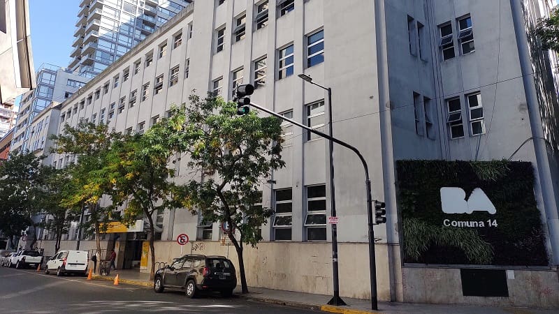 Se trata del edificio ubicado en la esquina de Beruti y Coronel Díaz, un punto estratégico del barrio de Palermo, donde funciona la Sede Comunal 14 con su Registro Civil y oficinas del poder judicial porteño.