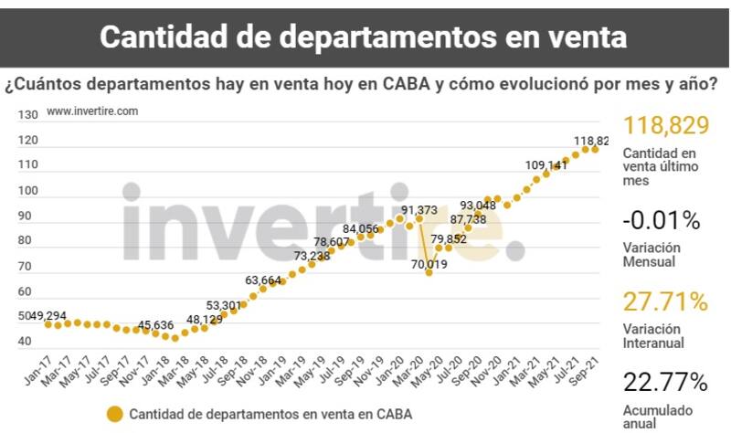 Según datos deInvertir Real Estate, hoy hay 161.062 propiedades a la venta. De ese total el 74% corresponden a departamentos, lo que represente una suba del 28% en un año. La mayoría son unidades de entre 20 y 50 años. En un segundo lugar, se encuentran los departamentos a estrenar.