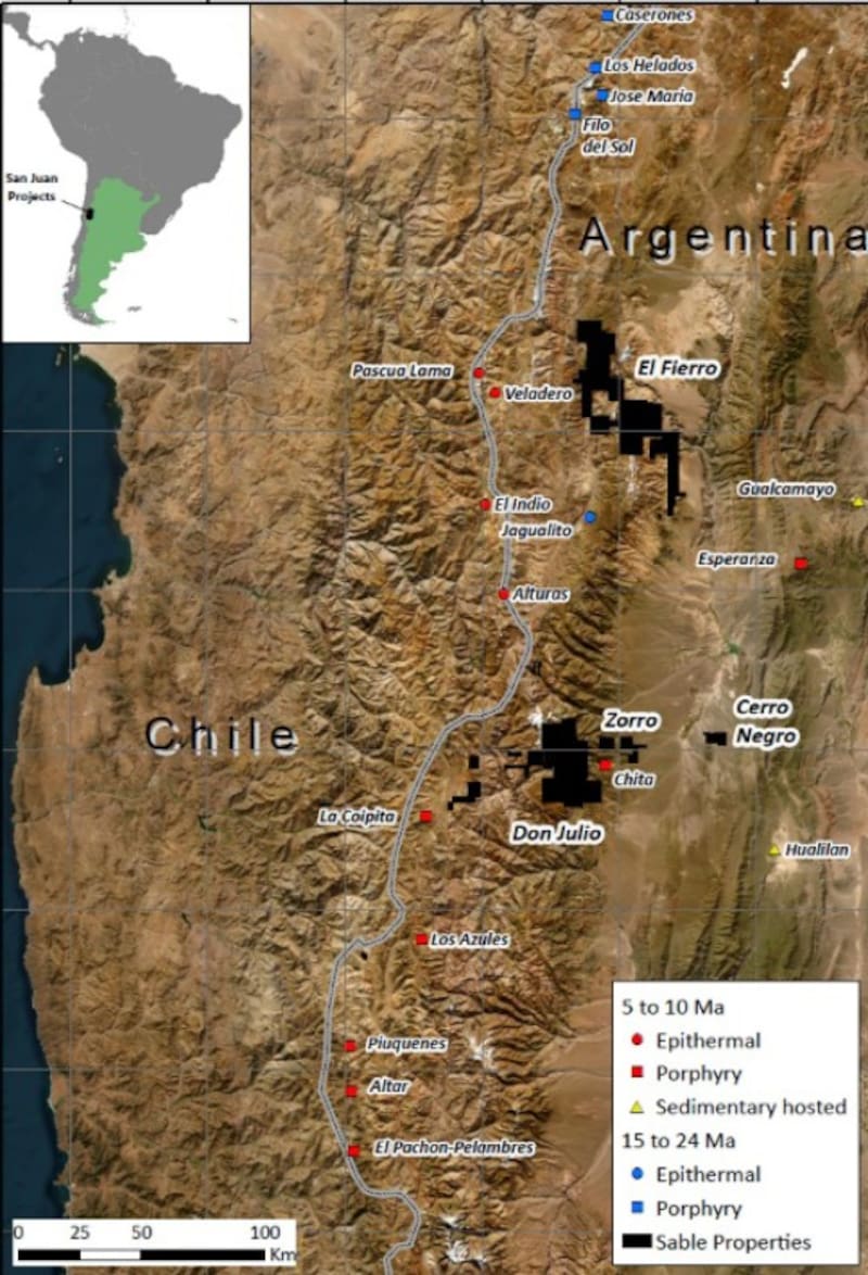 En paralelo, el proyecto insignia de Sable en la provincia, Don Julio, se encuentra a 21 kilómetros al oeste del nuevo activo, con cuatro blancos de pórfidos activos (Gringa, Morro, Punta Cana y Tocota).