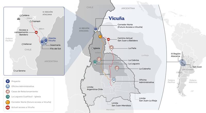 Vicuña es una compañía incorporada canadiense que se constituyó como la entidad para la empresa conjunta entre BHP y Lundin Mining (con 50% cada una) en relación a Josemaría, un depósito avanzado de cobre y el yacimiento de cobre, oro y plata Filo del Sol, en San Juan.