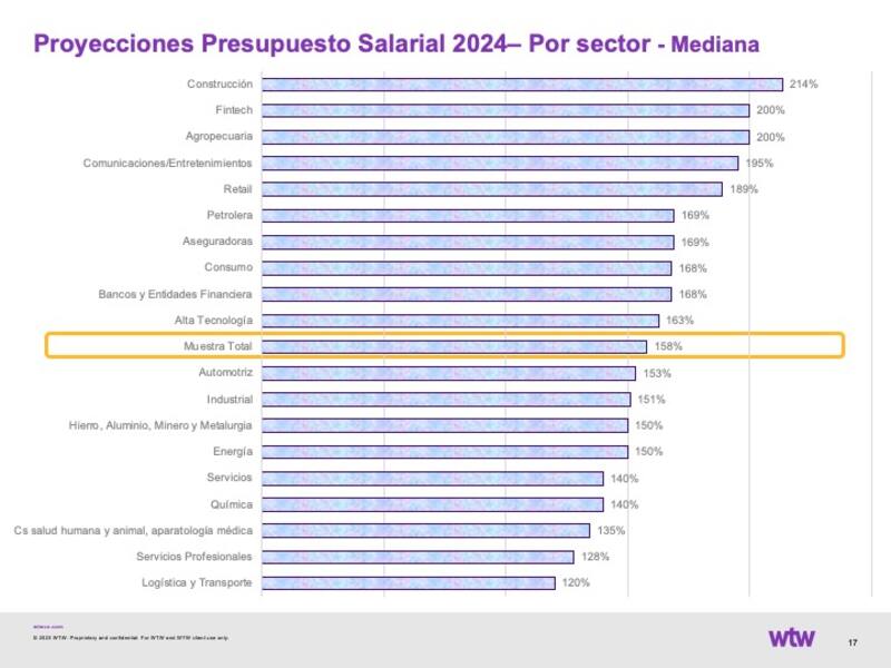 En cuento a lo presupuestado para el año, por ahora, las empresas tienen estimado ajustes promedio del 171% para el personal de fuera de convenio. "Este porcentaje respecto a ediciones anteriores, donde se preguntaba acerca del mismo, fue creciendo a un ritmo de 10 puntos en las últimas 3, edición a edición", explicó Angeli.