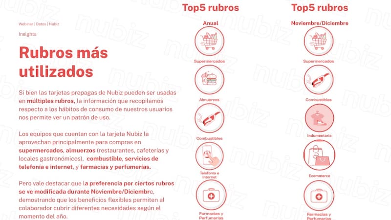 Según el mismo relevamiento, el rubro en el que más usaron la tarjeta los empleados es Supermercado. esta categoría fue la primera en el año y también la primera en noviembre/diciembre.