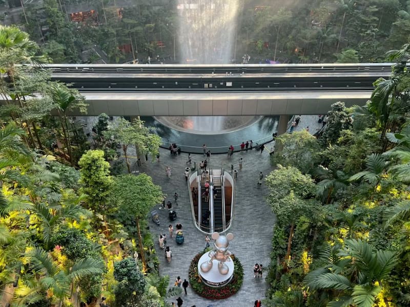 Changi tiene tiendas de lujo, un cine gratuito, un jardín con 47 especies de mariposas, acompañado de grandes parques internos con árboles reales, un carnaval subterráneo, un parque infantil, una pileta, entre otras atracciones.