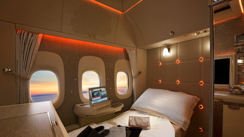 En las tres cabinas del avión, Emirates ofrece ocho asientos en primera clase, 42, en clase ejecutiva y 304 butacas en clase económica.