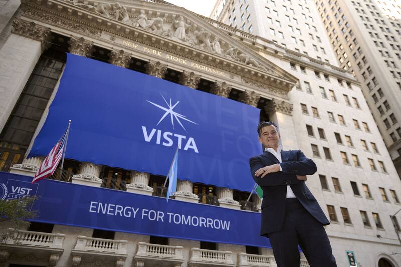 Miguel Galuccio, presidente y CEO de Vista, inició este martes las operaciones del mercado en los Estados Unidos con el emblemático toque de campana, en celebración del quinto aniversario de la compañía que él mismo fundó y que se consolidó como un vehículo de inversión directa a Vaca Muerta.