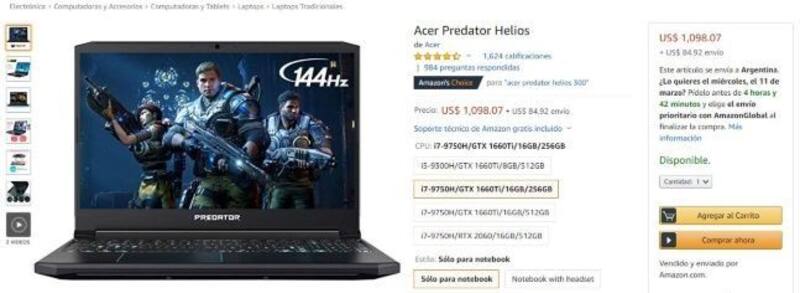 Con el servicio de Areobox, el producto tiene un precio internacional pesificado de $136.796,06 y un costo de Importación de $22.712,78 lo que lleva a un precio final de $159.508,84. Son más de $ 20.000 de diferencia.