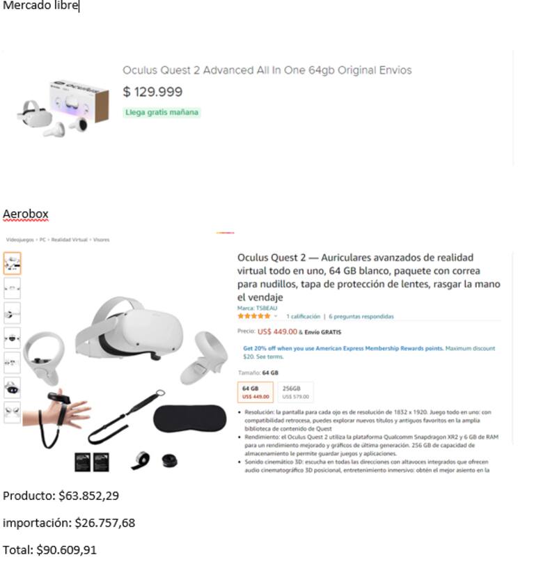 Como se puede apreciar, en el caso de un oculus rift, la diferencia es más de $ 30.000.