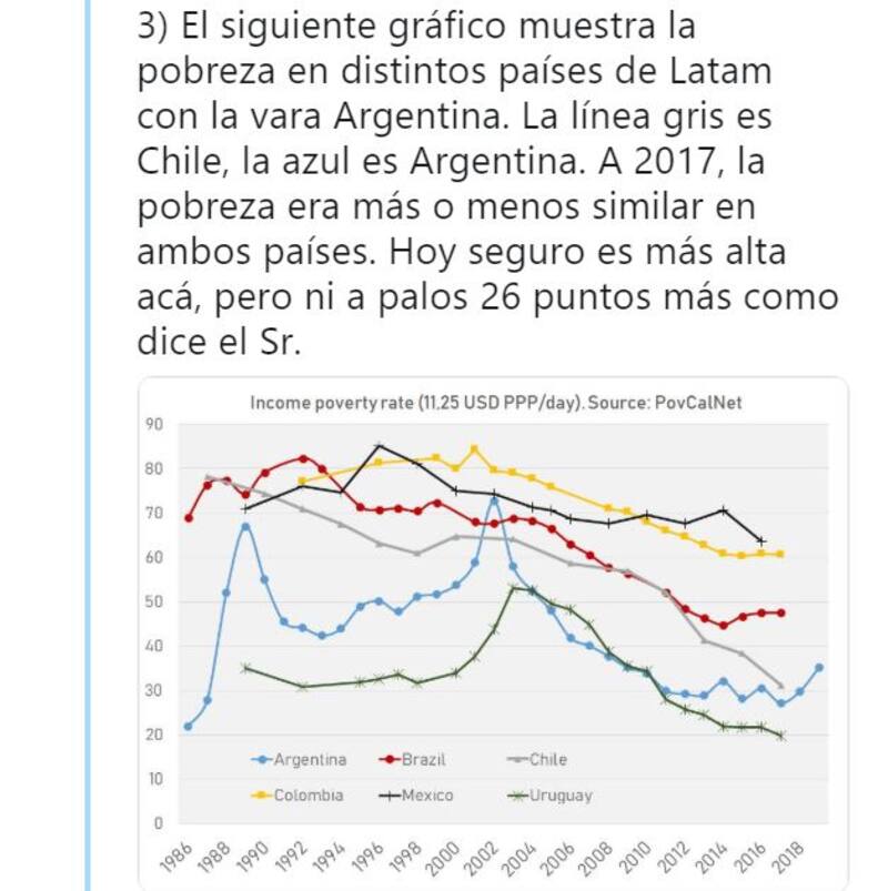 A raíz de las fuertes declaraciones se sumaron voces contrarias que expresaron que en Chile, en realidad, se vive mejor que en Argentina. En particular, afirmaron que hay menos pobreza.