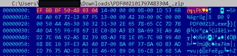 Al intentar abrirlo, ocurrirá un error. Según analizaron los expertos de la firma de ciberseguridad Kaspersky Lab, el encabezado ZIP contiene tres bytes adicionales (0xEFBBBF), que representan el BOM, antes de la firma "PK" (0x504B), que corresponde a los archivos ZIP. El BOM usualmente se encuentra en archivos de texto con codificación UTF-8. Algunas herramientas no reconocen este archivo como un ZIP verdadero y no podrán abrirlo.