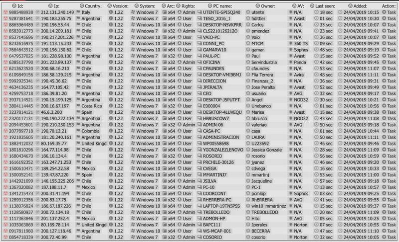 Se puede ver en la imagen capturada de la botnet que hay mayormente cuentas de Argentina y Chile.