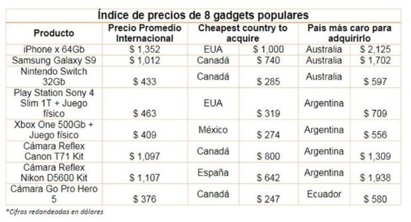 En el estudio, se desprende que Colombia es el país más barato de América latina para comprar tecnología y Argentina el más caro, con un precio promedio por producto de US$ 724 y US$ 1036 respectivamente. Si un argentino comprara un artículo tecnológico de cada categoría a precio promedio, gastaría en total US$7.203 lo que representa US$ 3.310 más que un estadounidense.