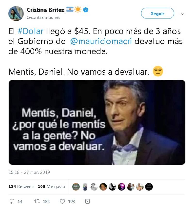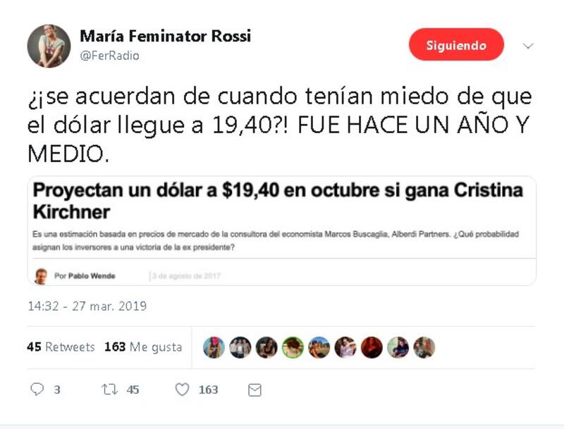 No falta quien recordó proyecciones de hace dos años, antes de las elecciones de medio termino, que auguraban que el dolar rondaría los $20 si ganaba Cristina Fernández y Unidad Ciudadana (algo que finalmente no sucedió).