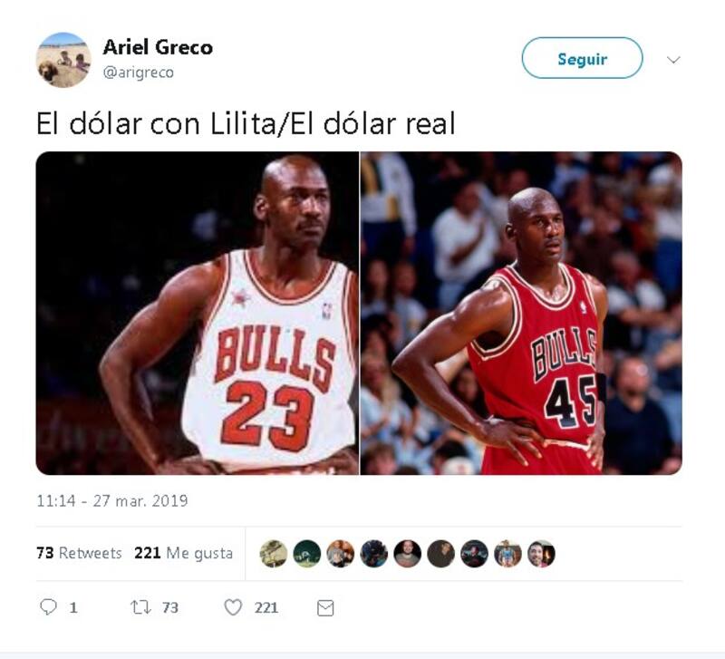 El primero es la mención de Michael "Air" Jordan, el basquetbolista que tuvo dos etapas por los Chicago Bulls, primero con el número 23 y luego con el 45. O sea: el valor de la divisa verde en mayo del año pasado y al día de la fecha.