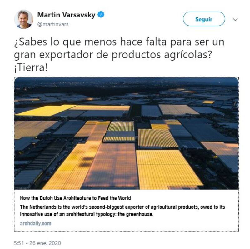 Martin Varsavsky dió la nota en redes sociales publicando un artículo que desmonta el mito de que se necesita suelo para triunfar en la economía del agro.