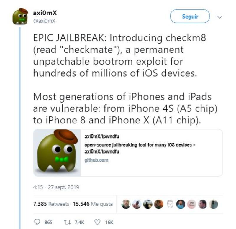 A finales de septiembre se conoció, a través de redes sociales, que un especialista en ciberseguridad encontró una falla crítica en la memoria de arranque de iPhone que afecta a todos los dispositivos desde el iPhone 4 hasta el flamante iPhone X. La vulnerabilidad fue liberada al público a través de un repositorio de Github que el propio exploiter creó.