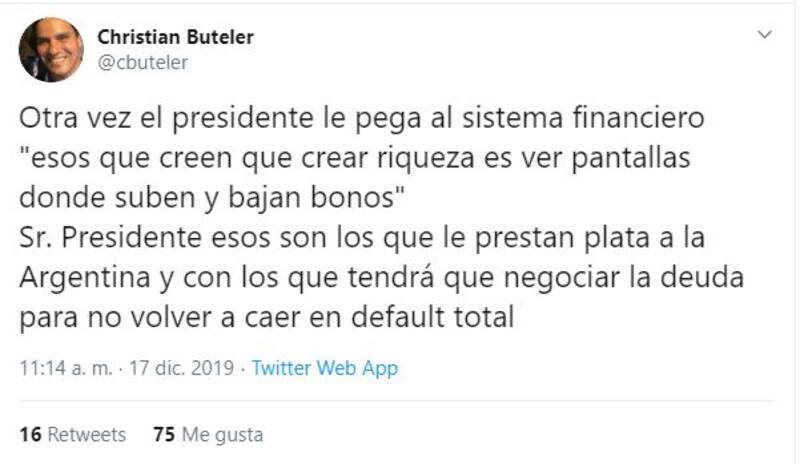 El trader y analista de mercados Cristian Buteler opino sobre la crítica de Guzmán a los mercados financieros.