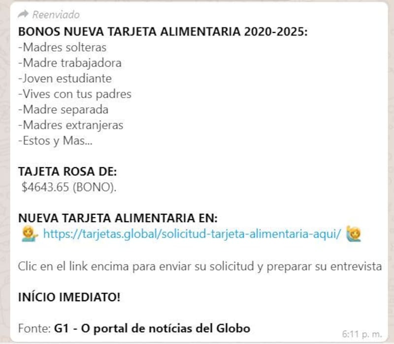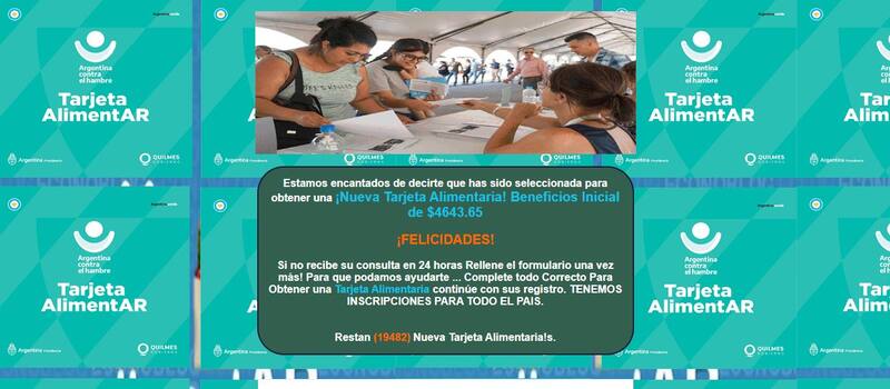 En las últimas horas comenzó a circular en las redes sociales un mensaje en el que se ofrece la posibilidad de acceder a una Tarjeta Alimentar, el instrumento lanzado por el Gobierno Nacional en el marco del Plan Argentina contra el Hambre.