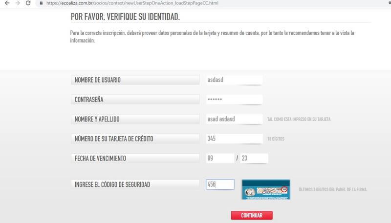 Luego de ingresar esos datos, sin ningún sentido más allá de ser la cantidad y el tipo de carácteres que espera recibir el sitio, se redirige al usuario a otra página web donde nada dicen sobre el error.