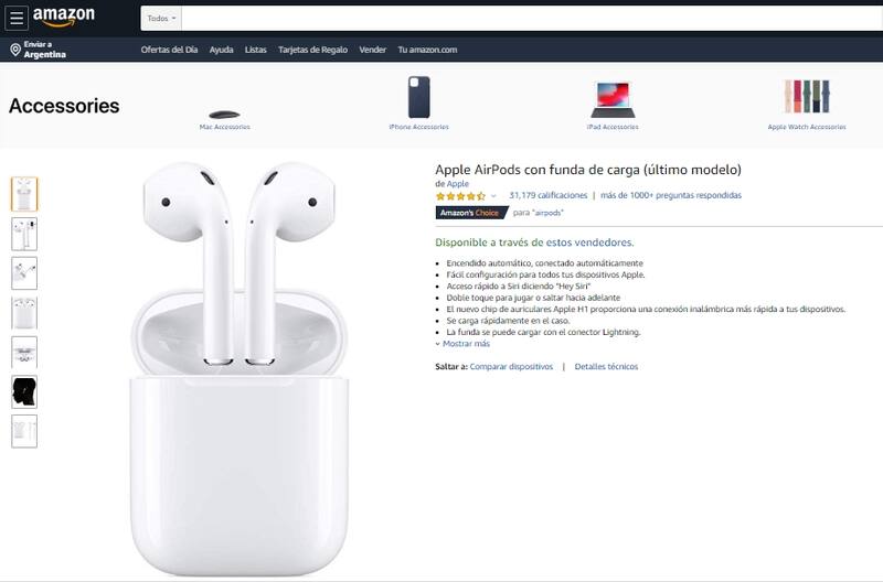 Otro de los dispositivos más traídos por los argentinos son los auriculares AirPods 2, de Apple, de segunda generación. Su valor en Amazon alcanza los US$ 128,99.
