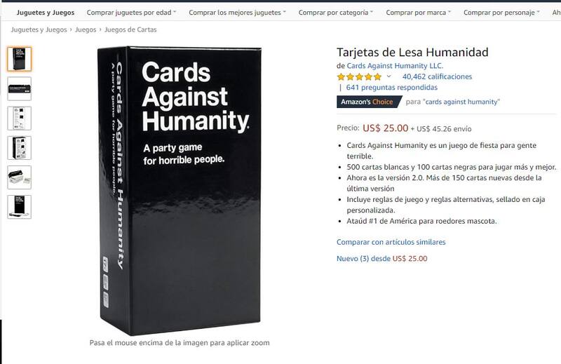 Otro de lo más vendidos es el juego de cartas "cards against humanity". Se trata de un party game de humor negro.