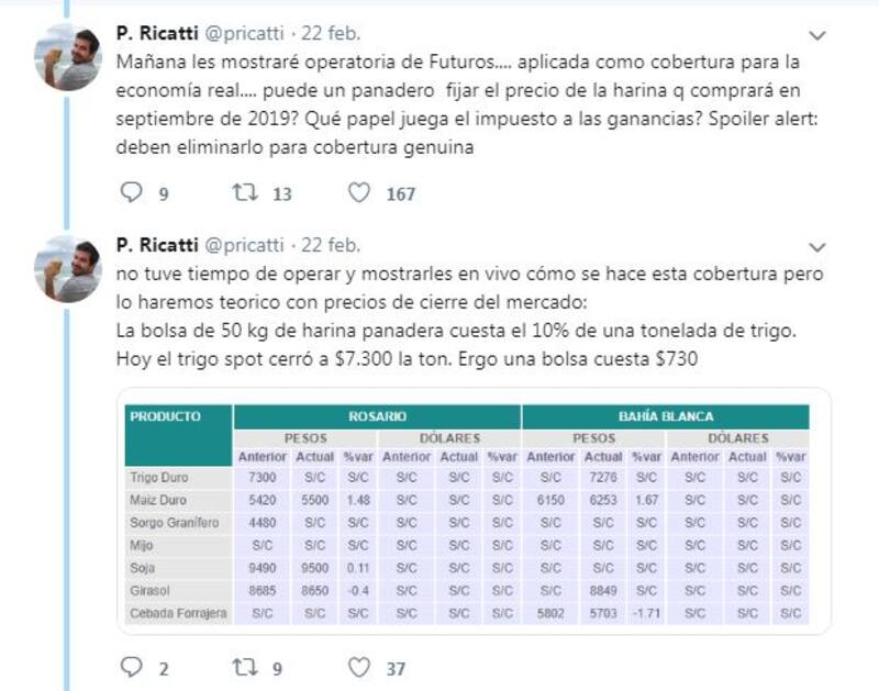 A continuación, el financista amateur incluyó el caso de los llamados "Futuros". Lo hizo a través de un ejemplo de la economía real: el precio de la harina.