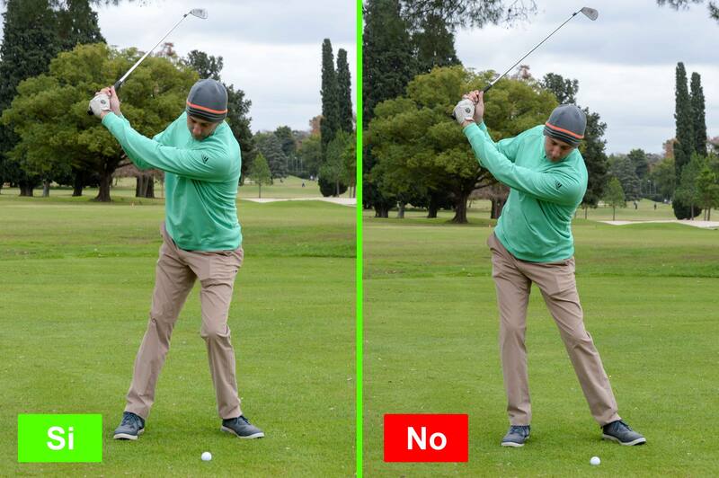 Por esto, es recomendable hacer lo contrario y mover las caderas levemente hacia el objetivo en el backswing. De esta manera será mas sencillo pegarle a la pelota primero y lograr consistencia, y al mismo tiempo, estar más centrados durante el pivot, moviéndonos dentro de nuestro espacio sin desplazamientos.