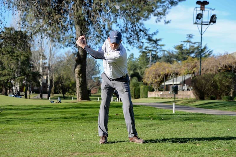 La clave es aprender a transferir el peso antes de comenzar en downswing. Esto no quiere decir que haya que desplazarse. Es una cuestión de presiones hacia abajo y hacia arriba. Y cuanto más se separa la presión de la masa, más potencia se logra.