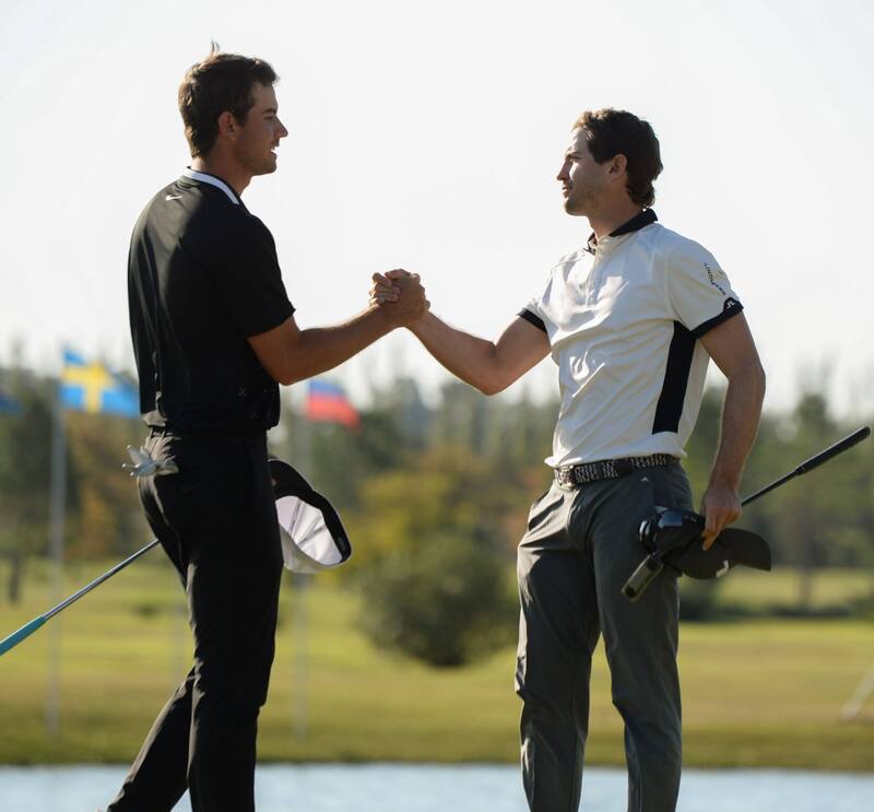El saludo de Ryan Ruffels a Andrés Echavarría por ganar el playoff / Foto de Pablo Elías para Agencia Equisele