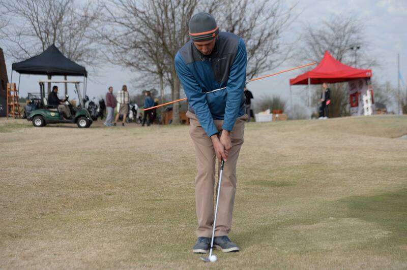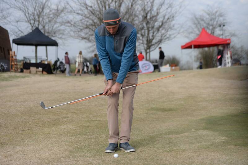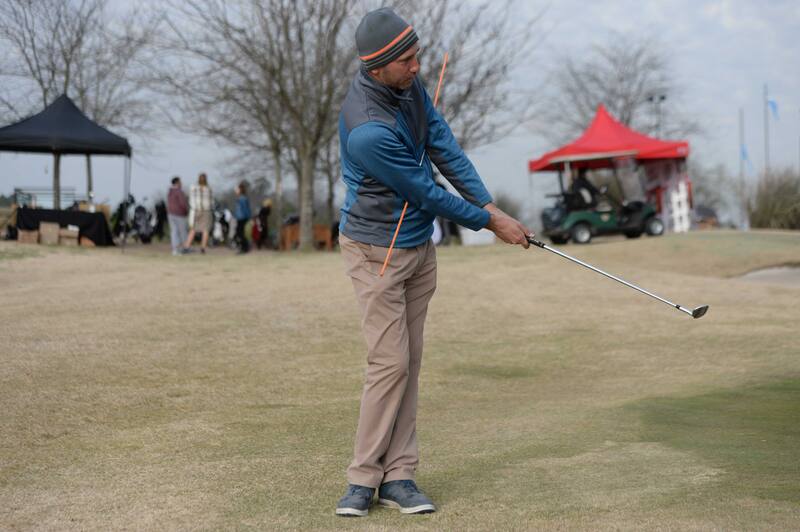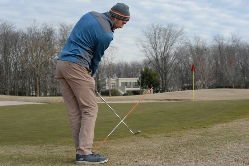 Una la varilla con la vara de su wedge como en la ilustración. El objetivo es pegar sus chips con mas rotación y menos muñecas. Trate de evitar que la varilla toque su cadera través del movimiento.