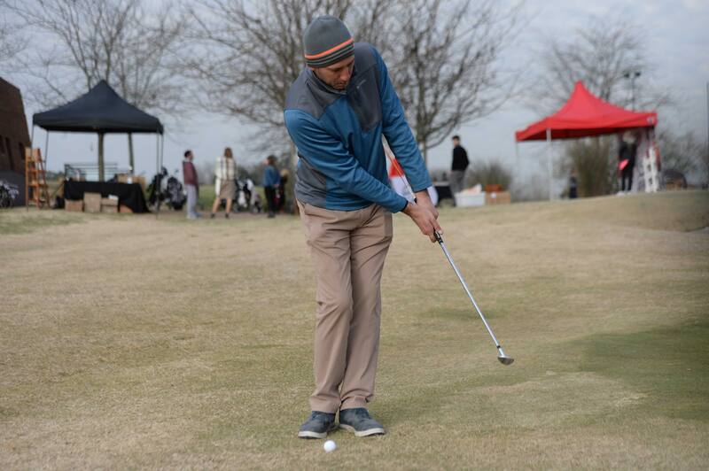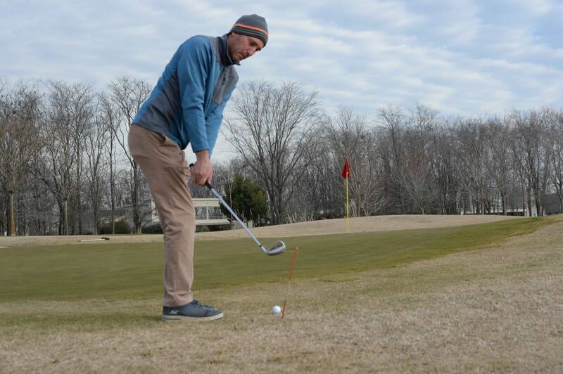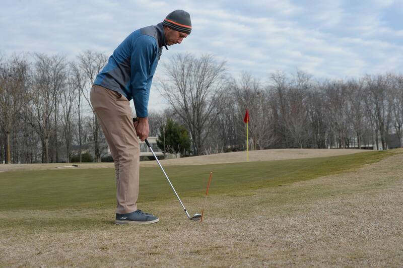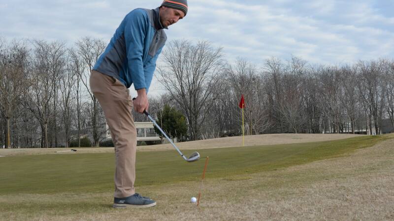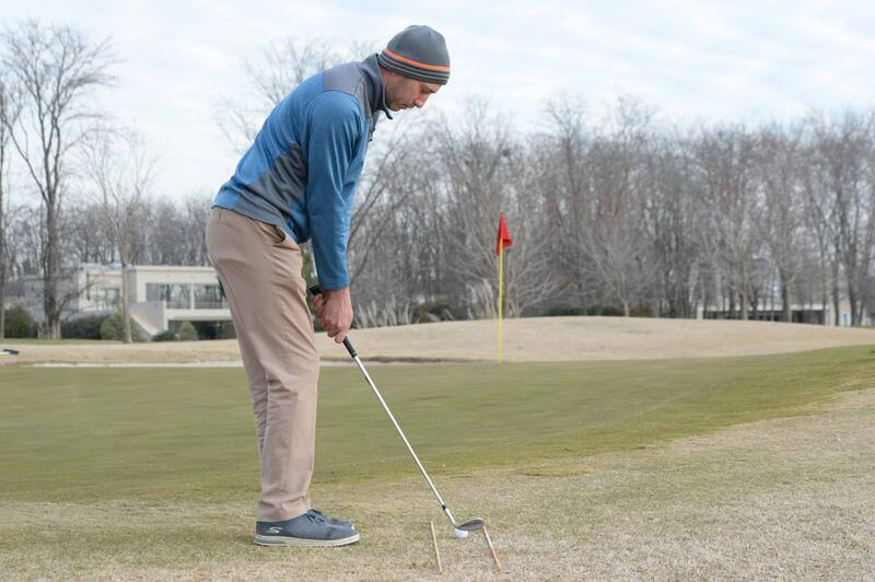 Mejore la alineación de sus chips con dos varillas en línea con el objetivo colocando la pelota en el medio de ambas. De esta manera logrará estar mejor parado y corregir el vuelo de sus chips.