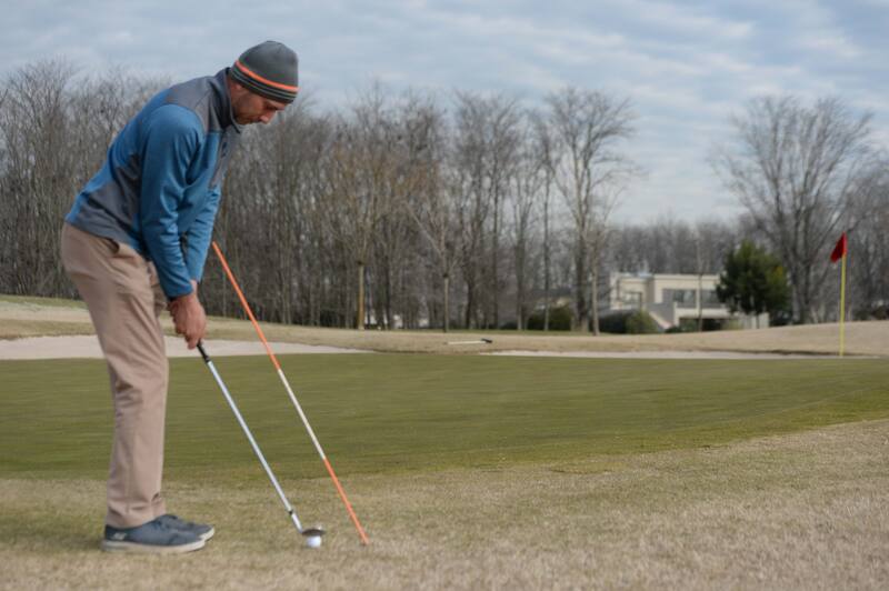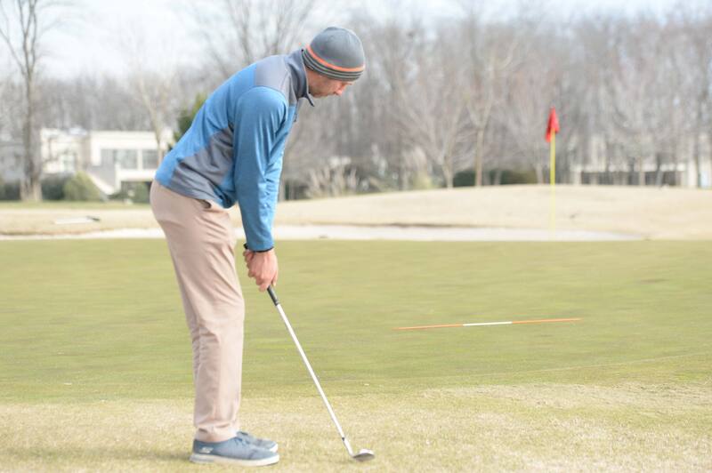 Coloque la varilla en el green unos 50 centímetros antes de donde la quiere hacer picar. Esto lo hará enfocarse en un punto mas cercano y no en el objetivo final.