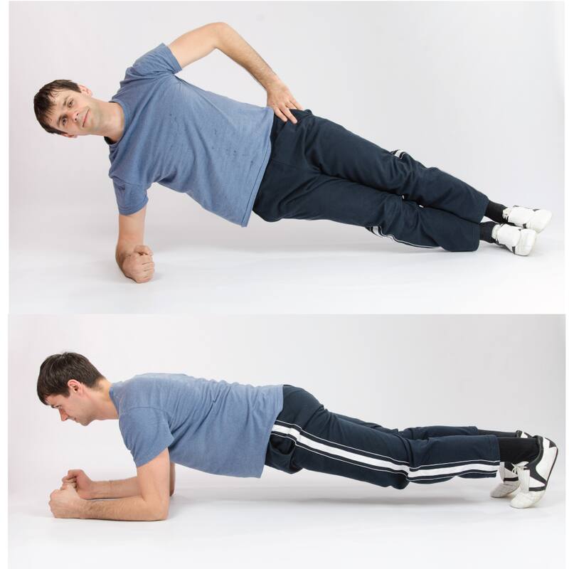 - Realizar 3 series de 60 segundos: Plancha frontal, Plancha Lateral, Plancha Contralateral, Extensión de espalda.