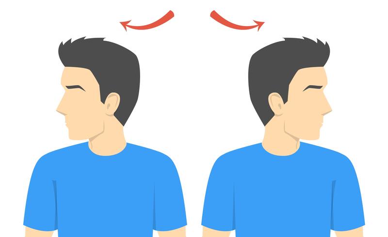 - Con la espalda bien derecha, mirando hacia el frente, rotar la cabeza hacia el hombro izquierdo, luego hacia el frente, luego hacia el hombro derecho. Cuidar la respiración y realizar los movimientos muy lentamente. Repetir al menos 10 veces.