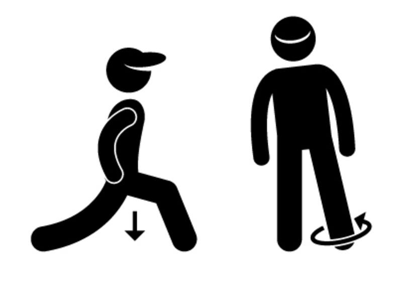Similar al ejercicio anterior, pero en vez de mirar hacia el frente, girar el tronco y agacharse hacia un costado (como se muestra en la imagen). Mantener estas posiciones 10 segundos y repetir al menos 4 veces por cada lado.