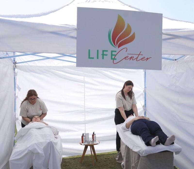 En concordancia con sus programas para mejorar la calidad de vida, Life Center Luján brindó masajes para que los participantes puedan relajarse. El centro de bienestar ofrece gestión emocional, rutinas saludables y acompañamiento médico. Como complemento, El Arte de Vivir desplegó un sector para realizar una sesión de yoga.