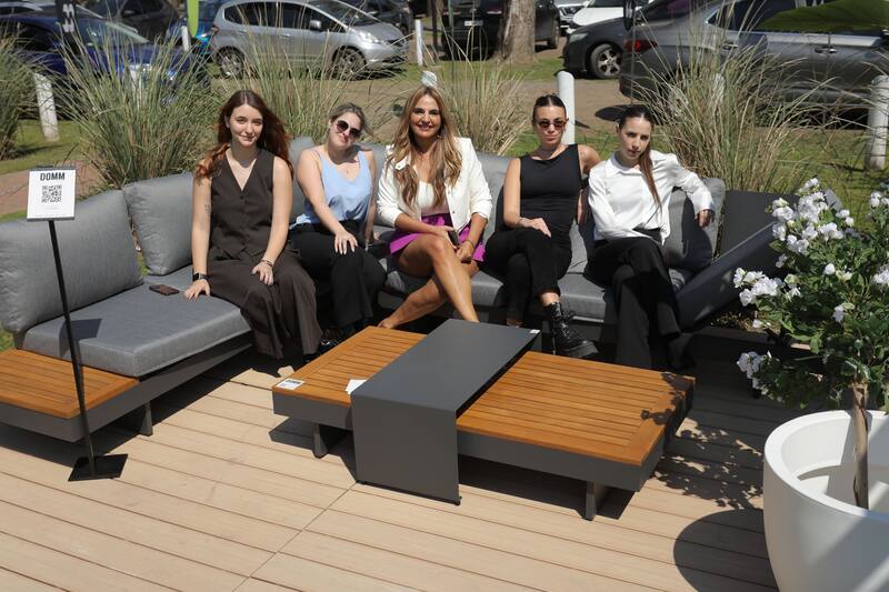 El deck fue decorado con un esquinero que permite variar los módulos y se convierte en reposera, mesas de apoyo que se adaptan a los espacios de cada cliente. "Lo que buscamos es mantenernos al día con las tendencias, más que nada europeas, manteniendo nuestros estándares de calidad y compromiso con nuestros clientes. Seguimos las tendencias de líneas orgánicas, los colores como, por ejemplo, el verde matcha", contó Camila Spampinato deDomm Home.
