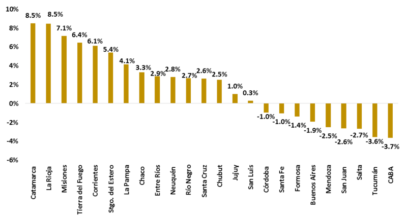 La creación/destrucción de empresas no fue pareja entre provincias en los últimos años y tampoco la densidad empresarial resultante en la actualidad. A nivel país se cuentan 11 MiPyMEs por cada mil habitantes, pero hay varios países en uno: Formosa y Santiago del Estero tienen 4 y 5 cada mil habitantes, mientras que Córdoba y Santa Fe tienen 13 y 14, respectivamente.